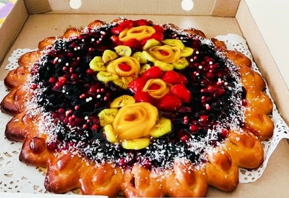 Начинка: черная смородина, украшение фрукты. Наполнение по согласованию при заказе.