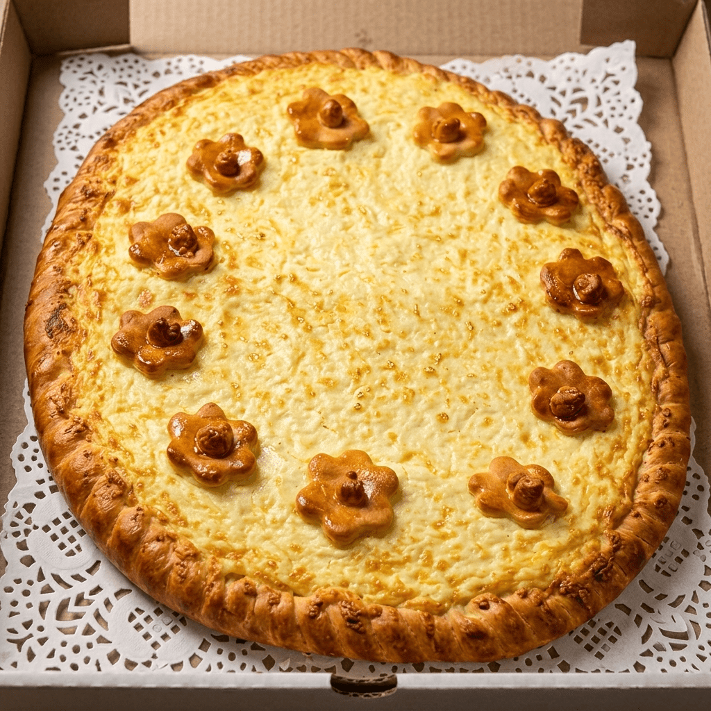 Начинка: Творог, Фрукты: вишня, персик, взбитые сливки.